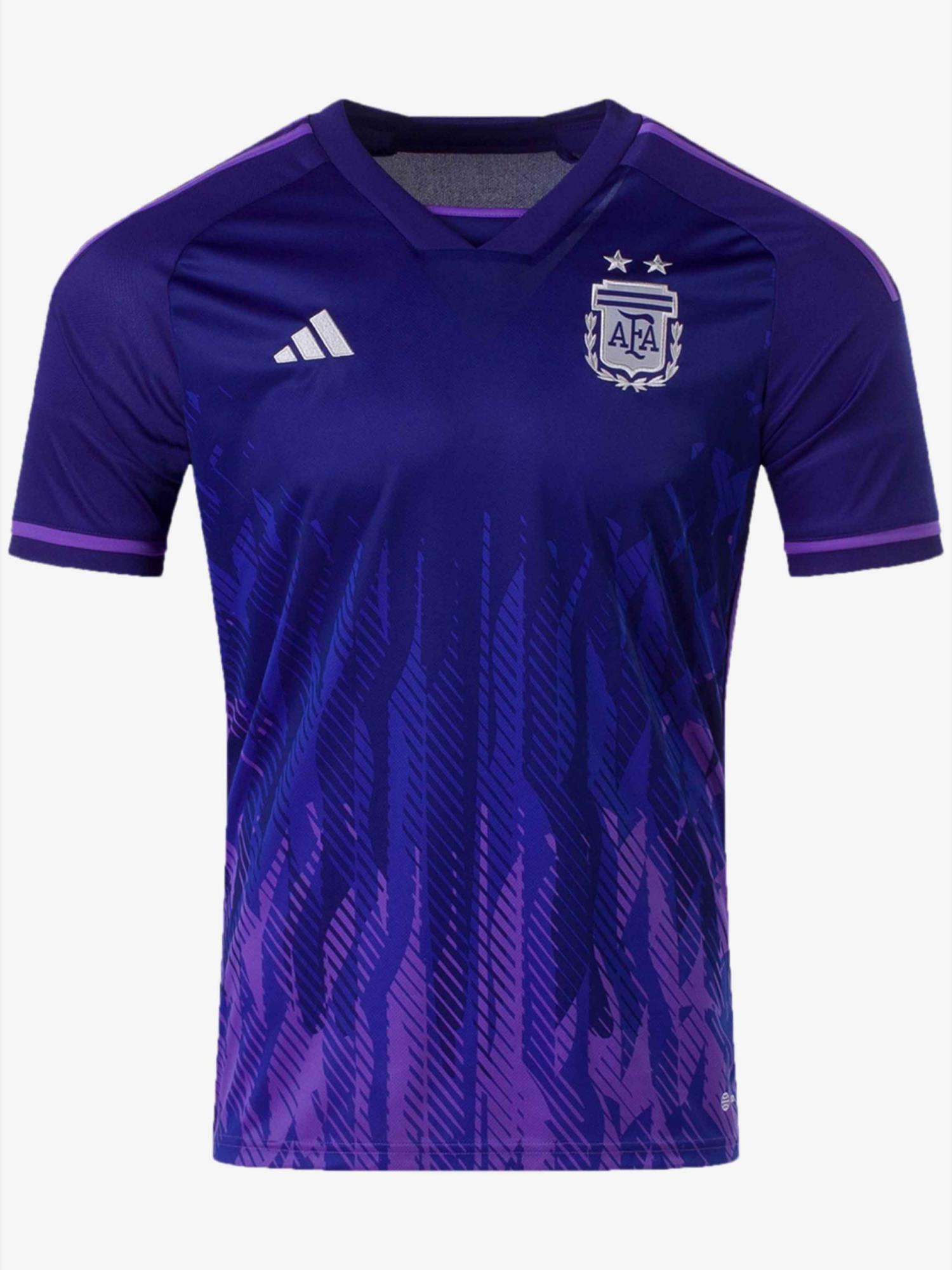 The Argentina Away 2022 World Cup Jersey Premium is a comfortable premium fan-fit jersey made for matchdays, travel, and everyday wear in the iconic 2022 away-season style. Customisation is available—add a name and number in original Argentina-style fonts and colours.
