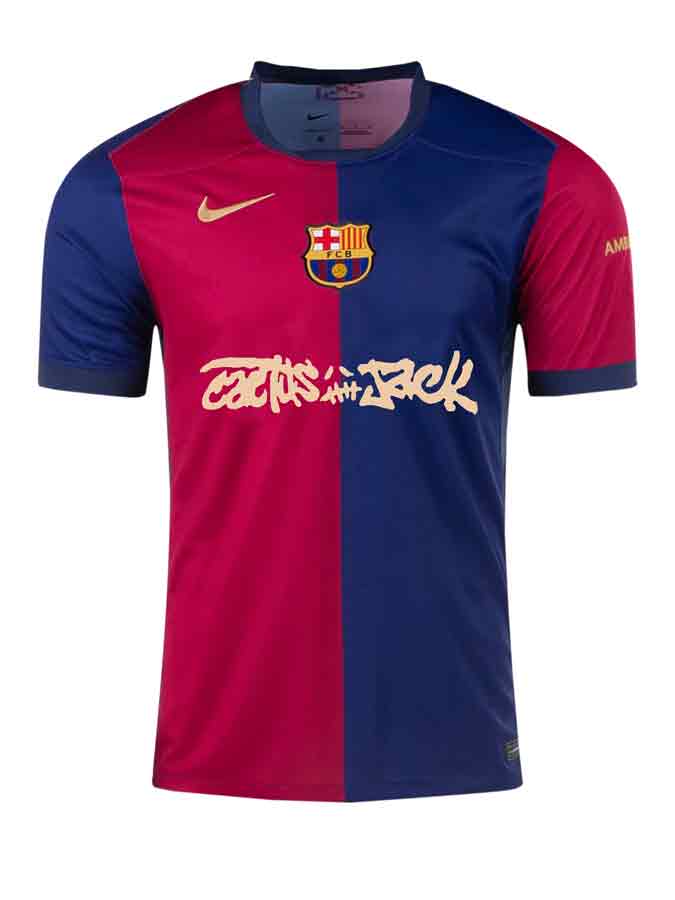 The Barcelona Home Travis Scott Jersey (24–25 Season) – Player Version is made for fans who want a standout Barcelona home-style jersey with special-edition appeal. It works well for matchdays, training wear, and collectors who prefer a sleek, on-pitch silhouette with a bold design edge.
