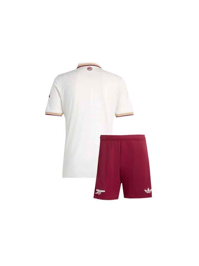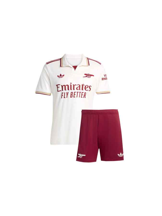 The Kids Arsenal Third Jersey And Shorts (25-26 Season) is a coordinated kit set made for young Gunners fans who want the full Third Kit look in one easy bundle. Ideal for school games, football practice, match screenings, and gifting, this kids’ kit includes a matching pair of shorts for a clean, complete finish. Customisation is available—add a name and number in original Arsenal-style fonts and colours.